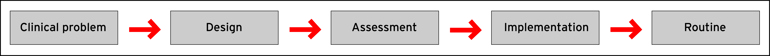 Thus, our research activities in CIMT, CAI-X and CCR are highly focused on the patients’ need and the value for patients as described in the OUH Patient Pyramid and our goal to have “Patients First”. We also focus on research in all elements of the innovation process as illustrated below in order to support that new technologies are designed to reflect the patients’ need, are assessed and demonstrate value and are implemented in practice and change the hospital routine and our healthcare services for patients, relatives and society.